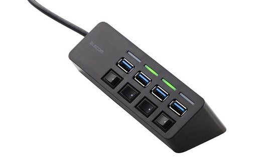 USB 5Gbps(USB3.2(Gen1))に対応する、個別スイッチ付きUSB-A×4ポートハブ
