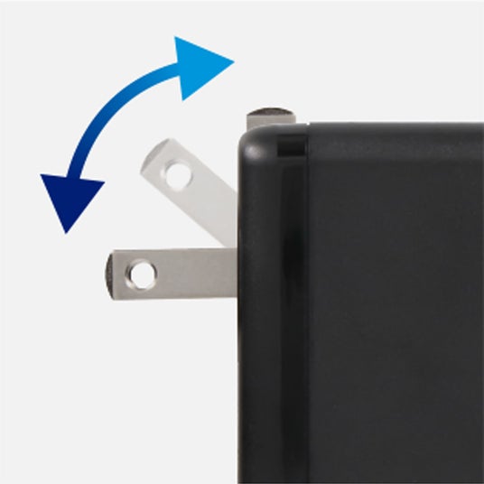 折りたたみプラグでもっとコンパクトにプラグ部分を折りたためるので、バッグに入れて出張や旅行などの外出先にも気兼ねなく持ち出すことができます。