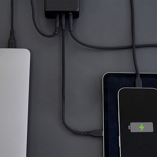 3台同時にさくさく充電2基のUSB Type-Cポートと1基のUSB Type-Aポートを併用することで、接続機器を3台同時に充電できます。