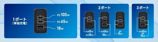 ※3ポート同時使用時は合計最大65W+15W出力となります。