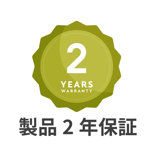 安心の2年保証本製品は2年保証がございます。ご使用中に万が一不具合などが発生した場合、保証期間内であれば無償で交換を保証いたします。お客様が安心して長くお使いいただける製品品質と併せて、サポート体制にも力を入れております。