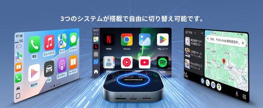 AI BOXは、車両の純正カーナビにUSB接続するだけで、ナビゲーション、通話、動画視聴、音楽再生など、まるでスマートフォンのような車載機能を実現します。