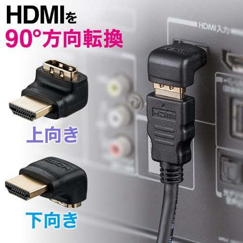 サンワサプライが運営する直販サイト『サンワダイレクト』にて、L字型でケーブルの折れを防ぐ、狭い場所での配線に最適なHDMI変換アダプター「500-HD033LD」(下向き)と「500-HD033LU」(上向き)が発売された。販売価格は各891円(税抜)だ。