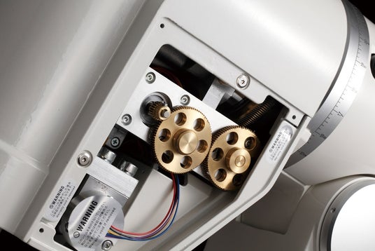 AXD2赤道儀WLは赤経ウォームホイールにφ135mmの大型ウォームホイールを採用、さらに270枚という十分な歯数を設けることでギアの歯1枚に対する精度誤差を排除、高剛性かつ極めて高い追尾精度を実現しています。