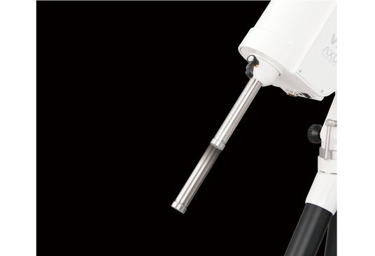 ウェイト軸には耐蝕性に優れるステンレス素材を使用。赤道儀本体に収納される伸縮式のため、スピーディなセッティングが可能です。太さ25mm、旧製品ニューアトラクス赤道儀のウェイトと互換性があります。