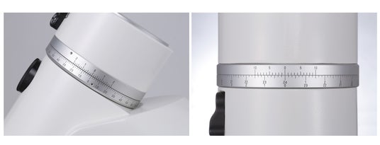 デザイン性と実用性を兼ね備えた目盛環。上品なシルバーメタリックアルマイト処理を施し、ホワイトボディにアクセントとして引き立ちます。 また、赤経、赤緯各目盛環にはバーニャ(副尺)を標準装備。