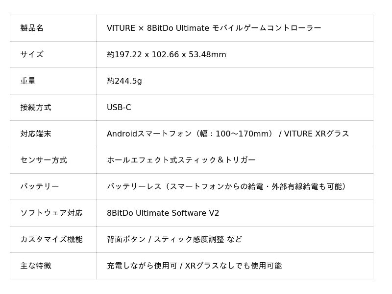 ・公式ストア:https://www.viture.jp/product/viture-x-8bitdo-ultimate-mobile-gaming-controller