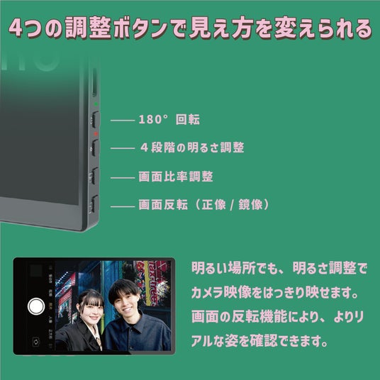 【4つの調整ボタンで見え方を変えられる】明るさの調整や左右反転もワンタッチ!