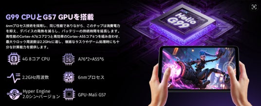 他の機能:4GLTE+2.4G/5G、BT5.2、 GPS、顔認証、画面分割、widevineL1、GMS認証、OTG転送