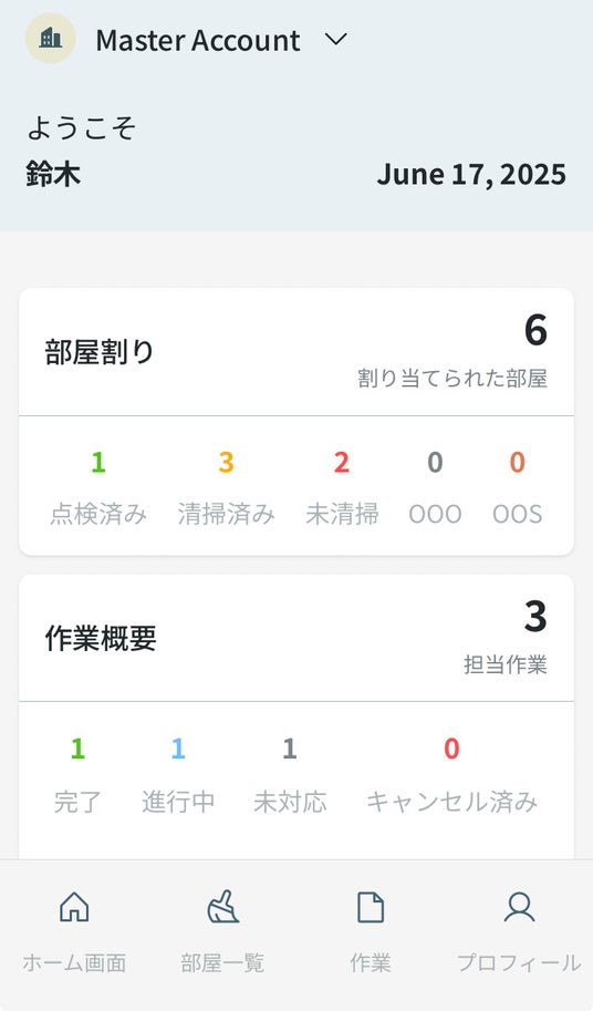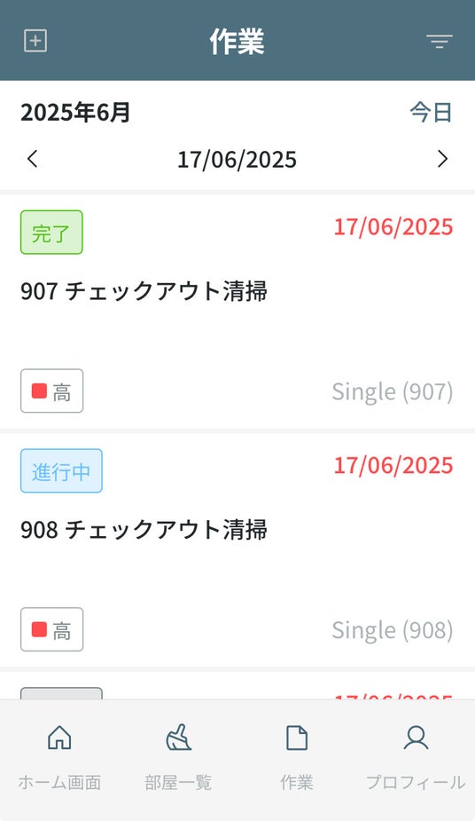 - 優先度表示と緊急対応緊急清掃などの優先度がタグ表示され、重要タスクを見逃さず対応可能