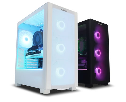 このたび販売を開始するのは、AMD B550チップセットを搭載したマザーボードに、AMD Ryzenプロセッサーを組み合わせたゲーミングPCです。ケースには、高い冷却性能と優れた拡張性を両立した「GHLシリーズ」を採用しており、カラーはブラックとホワイトの2種類からお選びいただけます。ライティングはすべてソフトウェアで制御でき、左サイドの強化ガラスパネルを通して、光るケースファンや側面に配置されたRGB-LEDラインの美しい演出を楽しめます。