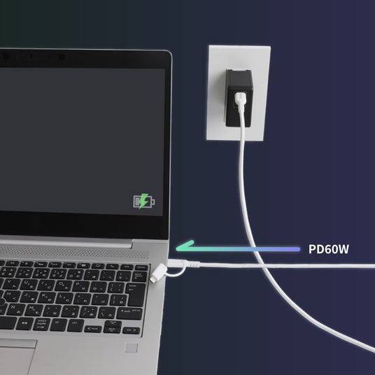 USB PD60W充電に対応USB Power Delivery(PD)に対応しており、最大60W充電に対応。ハイパワーな充電器と併用すれば、充電時間の短縮が可能です。