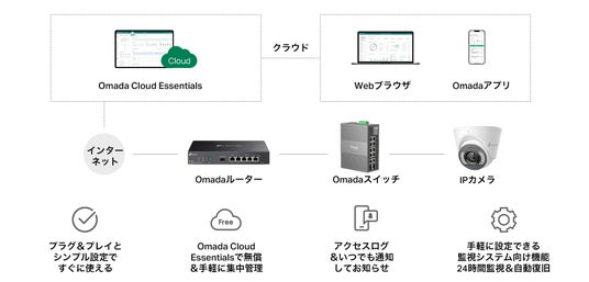 ・WebブラウザやOmadaアプリで集中型クラウド管理*1