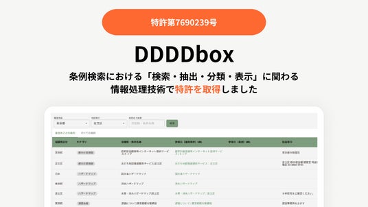 株式会社AMDlab(本社:兵庫県神戸市、代表取締役:藤井章弘)は、自社が開発・提供する建築設計支援SaaS「DDDDbox(フォーディーボックス)」に搭載されている条例検索機能に関する技術について、2025年6月10日付で特許を取得いたしました(特許第7690239号)。