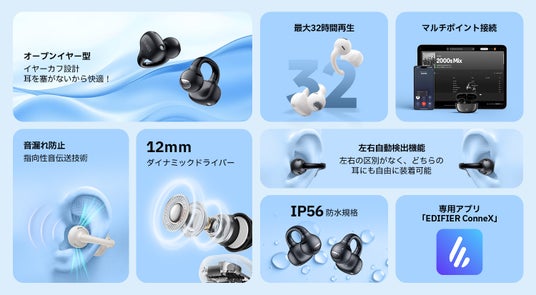 Edifier Japan株式会社(本社:埼玉県富士見市)は、軽やかで開放的なリスニング体験を提供するイヤーカフ型完全ワイヤレスイヤホン「Comfo Q」を発売します。耳をふさがない設計で周囲の音も自然に聞こえ、仕事や移動中にも安全で快適な“ながら聴き”を実現いたします。