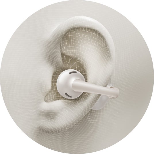 12mmダイナミックドライバーにチタンコーティング複合ダイアフラムを採用することで、クリアでバランスの取れたステレオサウンドを実現いたしました。さらに、独自設計の音響構造を取り入れた指向性アコースティック技術により、音漏れを抑えながらも臨場感あふれる高音質をお楽しみいただけます。また、AIアルゴリズム技術により周囲の騒音と人の声を的確に分離し、騒がしい環境下でもご自身の声を相手にクリアに届けることが可能です。