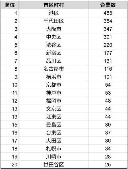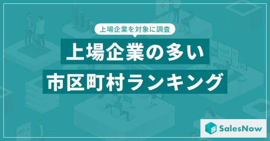 株式会社SalesNow(本社:東京都渋谷区、代表取締役:村岡功規、以下「当社」)は、国内540万社の企業情報を完全網羅した日本最大級のデータベース「SalesNow DB」より、「上場企業の多い市区町村ランキング」を発表しました。