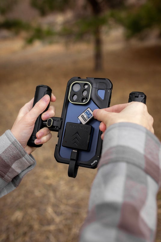 PGM12は、小型軽量のCFexpress Type Aシングルスロットカードリーダーです。アウトドアでスマホやタブレットなどに撮影データを速やかに転送することができます。また、本体には米国特許取得のマグネットベースを搭載しており、付属のType-C延長ケーブルとメタルプレートを使えば、iPhone15もしくは16の背面に取り付け、CFexpress Type Aカードに4K ProRes 120fps撮影を記録することができます。