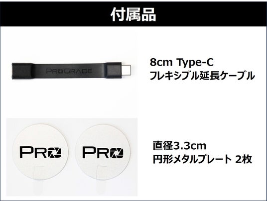 4. 付属品:8cm Type-Cフレキシブル延長ケーブル、直径3.3cm円形メタルプレート2枚