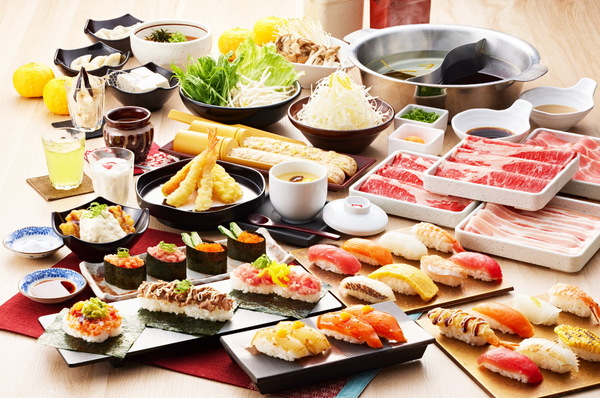 おだしは「ゆず庵昆布だし」、「すき焼きだし」、「鰹一番だし」、「塩レモンだし」に加え、夏限定の「旨辛担々鍋だし」から2種を選べる。また、寿司やデザートも季節によって限定ものが登場する。