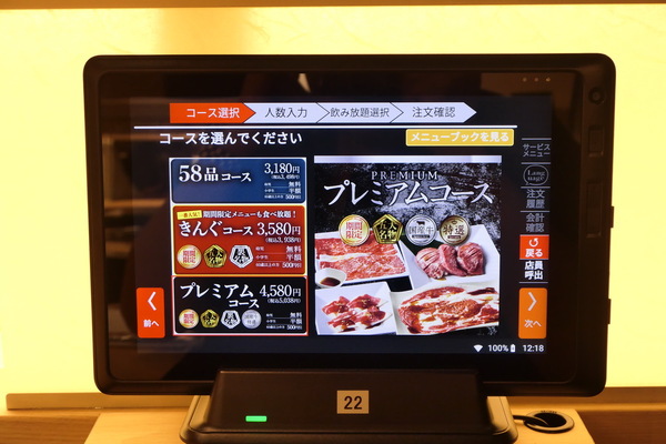両店舗ともに食べ放題ながら、着席してタッチパネルでオーダーし、すべてテーブルまで運んでくれる、「テーブルオーダー・バイキング形式」で、何度も食材をとりにいく必要がない。