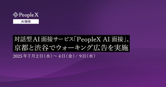 採用から活躍支援まで、AIで人事課題を解決する株式会社PeopleX(本社:東京都新宿区、代表取締役 CEO:橘 大地、以下:当社)は、当社が提供する対話型AI面接サービス「PeopleX AI面接」の認知向上施策の一環として、本サービスのウォーキング広告を実施することをお知らせいたします。