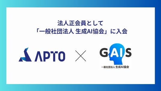 株式会社APTO(本社:東京都、代表取締役:高品良)は、一般社団法人 生成AI協会(英称:Generative AI Society、略称GAIS)に法人正会員として入会しましたので、お知らせします。