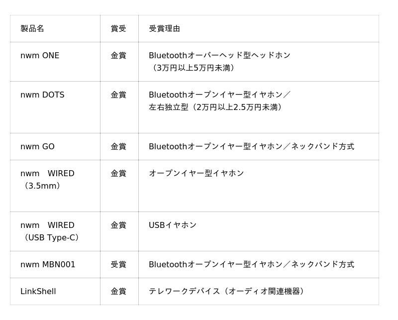 ~フラッグシップモデル「nwm ONE」をはじめとする7製品が金賞と部門賞を受賞~