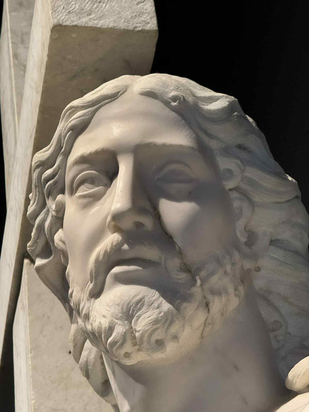 ジュスティニアーニは、信頼する彫刻家に完成を依頼した。この彫刻家は、おそらく若きジャン・ロレンツォ・ベルニーニまたはその工房とされている(諸説ある)。