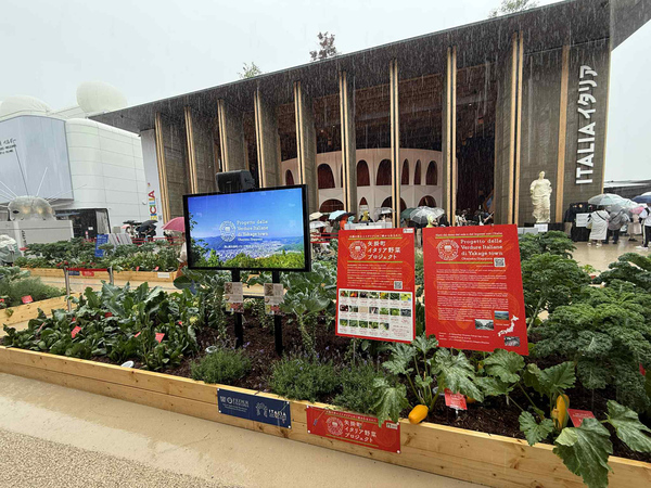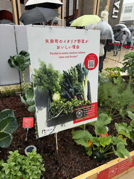 イタリアパビリオンではさまざまなコラボレーションが行われているが、筆者が訪れた際には、パビリオン正面(屋外エリア)で、「岡山県矢掛町イタリア野菜プロジェクト」(6月5日〜12日)が開催されていた。すでに終了しているが、素敵な取り組みだったので紹介したい。