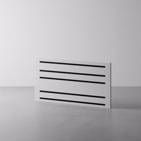 FlexiSpotの電動昇降脚は、モデルによって支柱の位置が異なります。PREDUCTS DESKは裏面のレールにモジュールを吊るす構造上、この支柱を避けてレールを設置する必要があり、これまではE7/E8用、E7Pro用を展開してきました。今回のE7Hも、その支柱の位置に合わせて設計したモデルです。