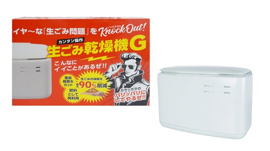 今回ご紹介する『生ごみ乾燥機G』は、温風・高熱によって生ごみを乾燥処理する便利な生活家電です。生ごみを投入し、スイッチを押すだけで生ごみをカラカラに乾かすことができます。