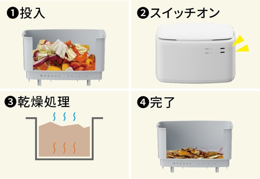 ※生ごみに多量の水分が含まれていると、生ごみが乾ききらない場合があります。しっかりと水分を切ってから投入・乾燥させてください。