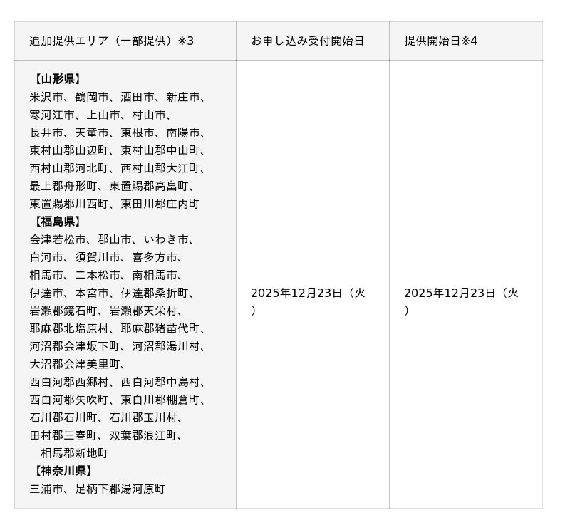 サービス提供エリア、お申し込み受付開始日、提供開始日について