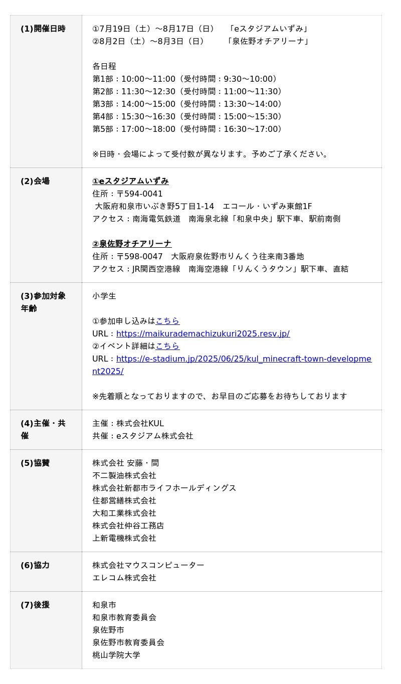 そして、このたび当社は、株式会社KUL(代表取締役:吉田 滋)とともに、2025年7月19日(土)~8月17日(日)にて教育型イベント「マイクラでまちづくり!!~小学生1000人で夏の自由研究2025~」を開催いたします。