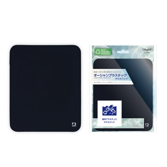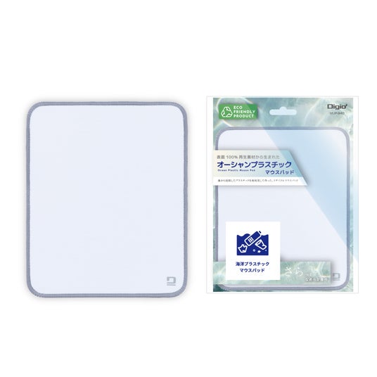 オーシャンプラスチックマウスパッドは、海から回収されたプラスチックと再生PETを原料にした環境に配慮されているマウスパッドです。近年、海洋に流出したポリエステルなどの合成繊維が、紫外線や海水の影響で温室効果ガスを発生させており、海洋汚染の一因とされています。