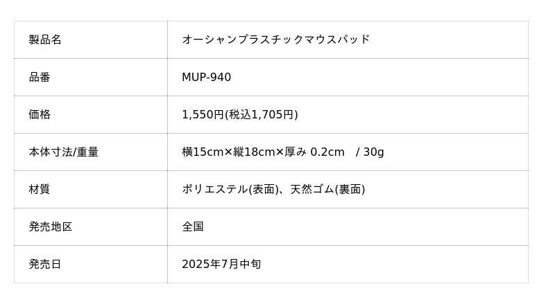 ナカバヤシ株式会社(本社:大阪市中央区、社長:湯本秀昭)は、表面生地100%再生素材から生まれた「オーシャンプラスチックマウスパッド」を2025年7月中旬より全国で順次発売します。