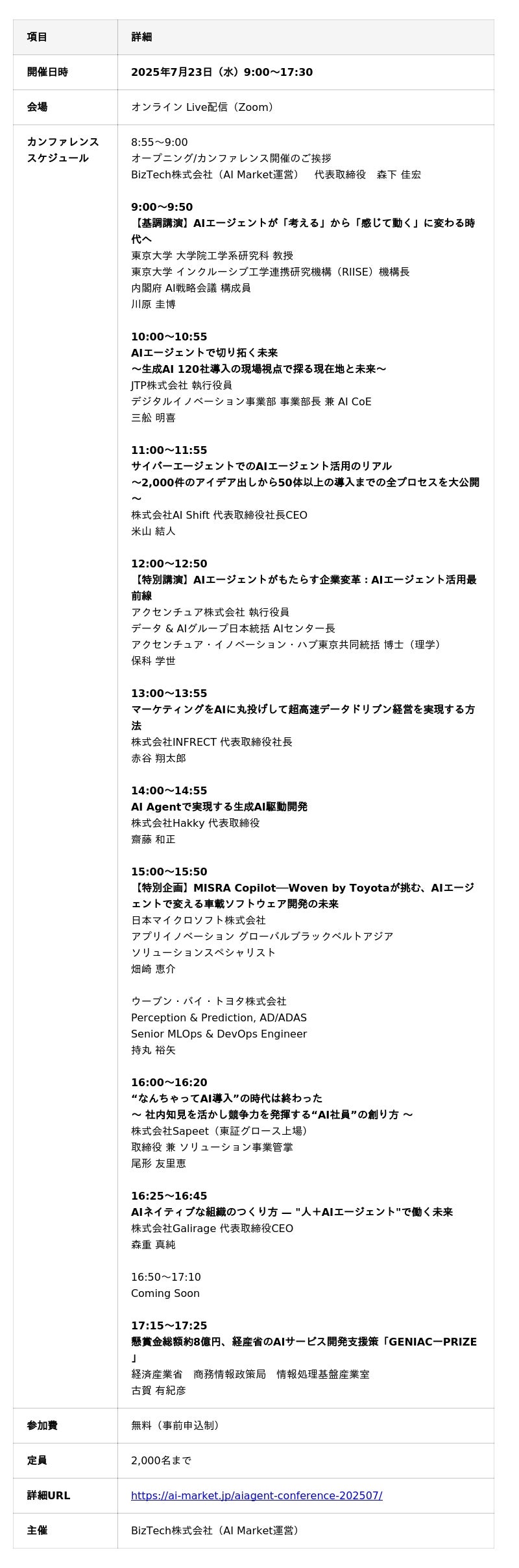【参加申込1,000名突破!】東大教授、マイクロソフト、アクセンチュア登壇のカンファレンス『AI Market Conference~「AIエージェント」の現在地と未来が学べる1日~』