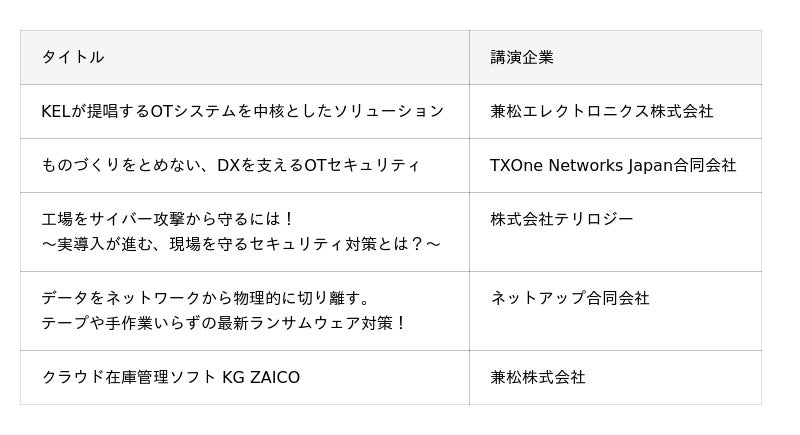 KELグループは、製造業をはじめとするネットワーク・セキュリティ分野の豊富な実績とノウハウを活かし、OTとIT双方の特性を踏まえたセキュリティ対策をご紹介し、製造現場の安全性向上に寄与すべく、このたび出展を決定しました。