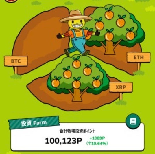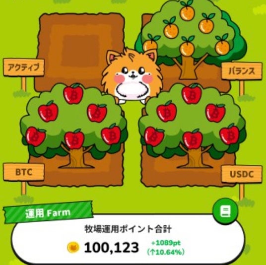 「ビットコin牧場」は、暗号資産の取引が牧場ゲームを楽しみながら行える資産運用ゲームです。「運用コース」「投資コース」のいずれかを選び、ビットコインなどの暗号資産の価格変動に連動した形で、作物を育てていきます。