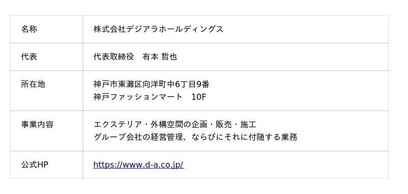 デジアラグループでは、デジアラホールディングスをはじめとするグループ各社において、「笑顔が生まれる住空間の創造」をビジョンに掲げ、事業を展開しております。