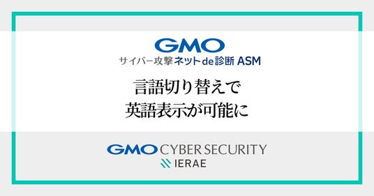 GMOインターネットグループでサイバー攻撃対策事業を展開するGMOサイバーセキュリティ byイエラエ株式会社(代表取締役CEO:牧田 誠 以下、GMOサイバーセキュリティ byイエラエ)は、2025年6月30日(月)より、ホワイトハッカーのノウハウを詰め込んだアタックサーフェスマネジメント (Attack Surface Management、以下ASM)(※1) ツール「GMOサイバー攻撃 ネットde診断 ASM」において、表示言語切り替え機能を実装し、日英バイリンガル対応が可能になりました。