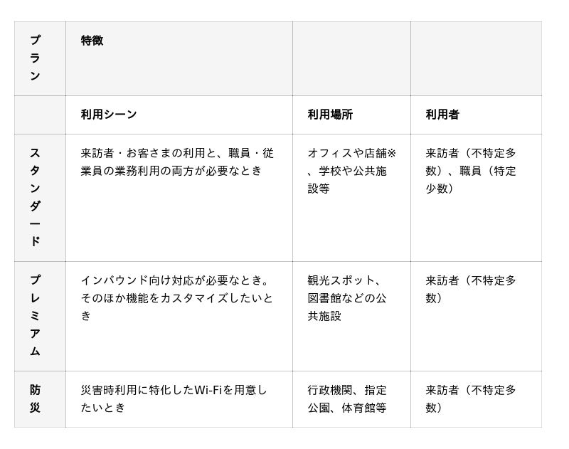今回新たに提供を開始するスタンダードプランは、事務所など利用対象者を特定できる環境で規模やレイアウトに応じた最適な無線環境を構築しながら、来訪者などゲスト利用も可能にすることで、セキュリティと利便性の両立を実現するWi-Fiサービスです。