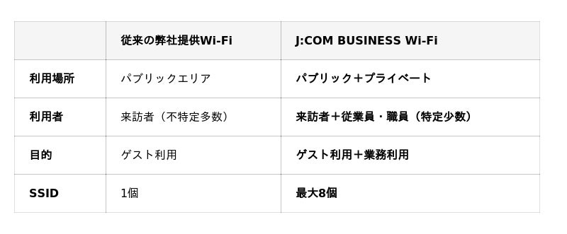 ■従来の弊社提供Wi-Fiと「J:COM BUSINESS Wi-Fi」の比較