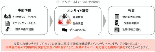 当サービスは、弊社のコンサルタントがお客様の社内ネットワークにおいて擬似的な攻撃活動を実施し、それに対してCSIRT/SOCメンバーが対応していく過程で、インシデントハンドリングの重要なポイントについて具体的なアドバイスを提供するものです。