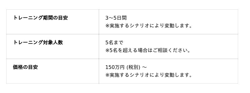 ご希望やシステム構成等をヒアリングさせていただいた上で、最適なトレーニングシナリオをご提案します。