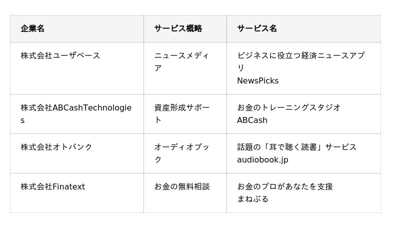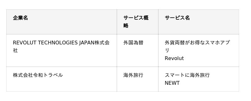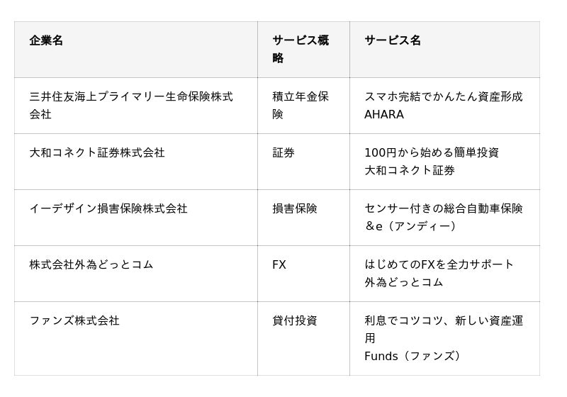 2025年6月30日現在、みんなの銀行アプリを通じて下記の提携事業者のサービスにアクセスできます。