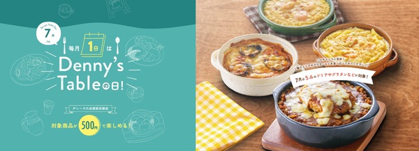 ファミリーレストランのデニーズは本日7月1日に「Denny's Tableの日」と題して、デニーズ店頭販売の冷凍食品「Denny's Table」の対象商品を特別価格500円で販売します。