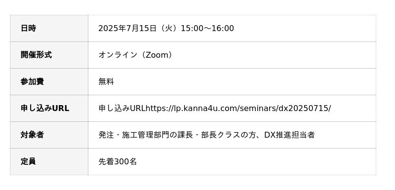 現場DXサービス「KANNA(カンナ)」を運営する株式会社アルダグラム(本社:東京都港区、代表取締役:長濱光、以下:アルダグラム)は、2025年7月15日(火)にDX推進担当者様を対象としたオンラインセミナー「DX推進オンラインセミナー」をオンライン開催いたします。本セミナーでは、企業のDX推進を担当されている方々を対象に、現場の生産性を向上させるための具体的な手法や考え方について解説します。