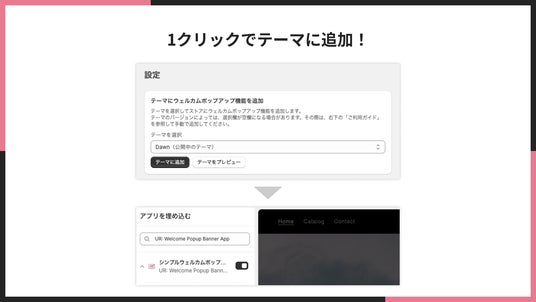 テーマへの追加も1クリックで完了。ノーコードで導入可能